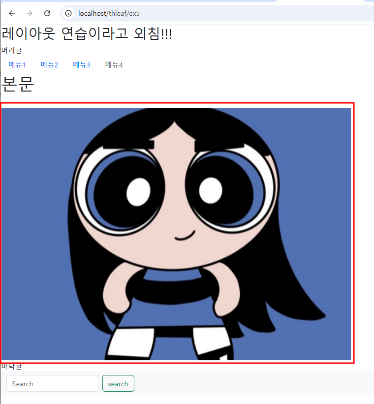 Thymeleaf practice 3 : 레이아웃 - 이미지 넣기 - 실행 결과