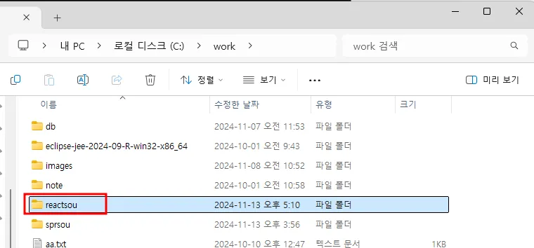 실습할 때 사용할 폴더에 새로운 directory 를 만들었다.